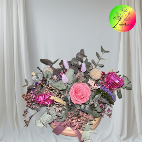 Cada flor ha sido cuidadosamente trabajada a mano para crear una composición sofisticada que transmite sentimiento y calidez. Un detalle pensado para sorprender en San Valentín y seguir acompañando cada día, manteniendo su belleza intacta sin necesidad de cuidados.